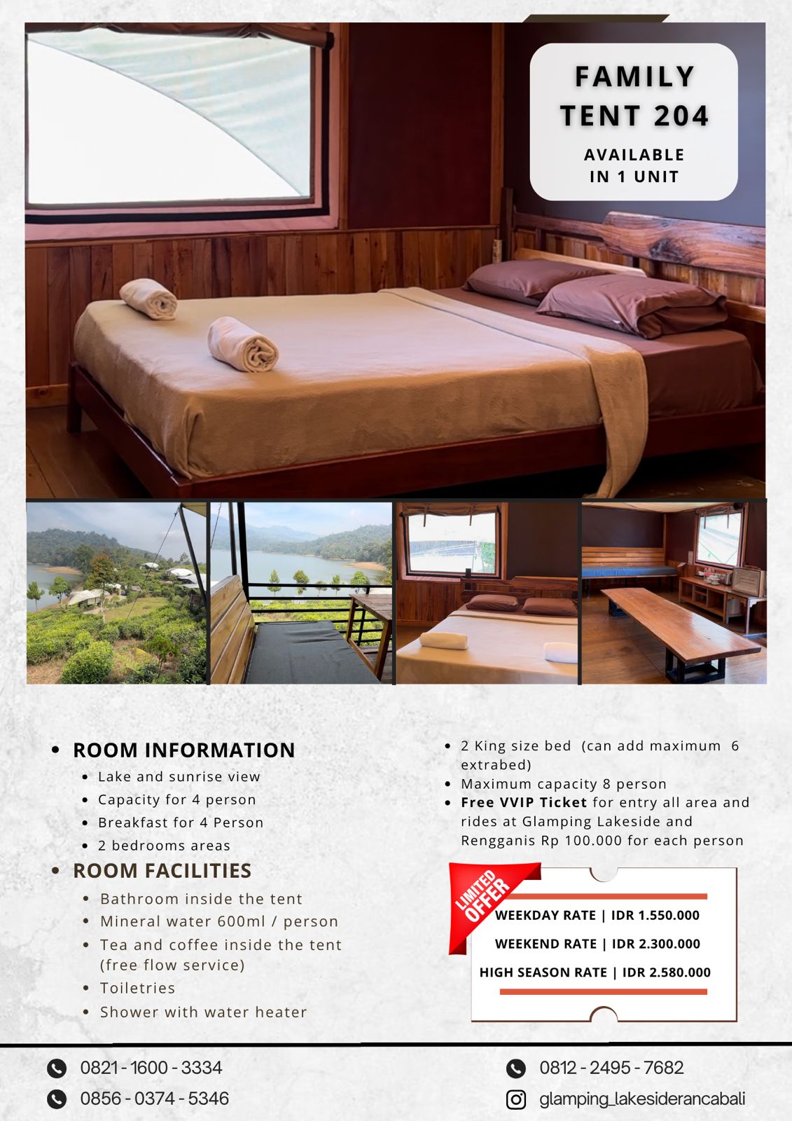 * Free VVIP Ticket for entry all area and rides at Glamping Lakeside and Rengganis Rp 100.000 for each person