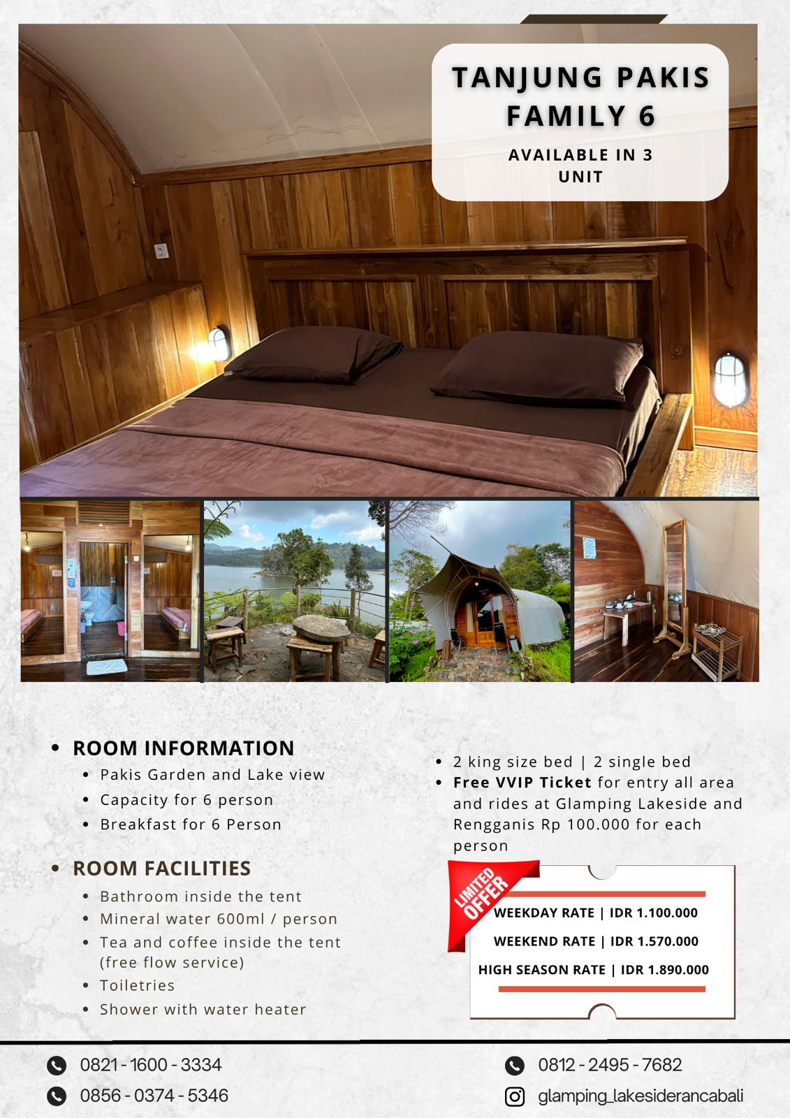 * Free VVIP Ticket for entry all area and rides at Glamping Lakeside and Rengganis Rp 100.000 for each
