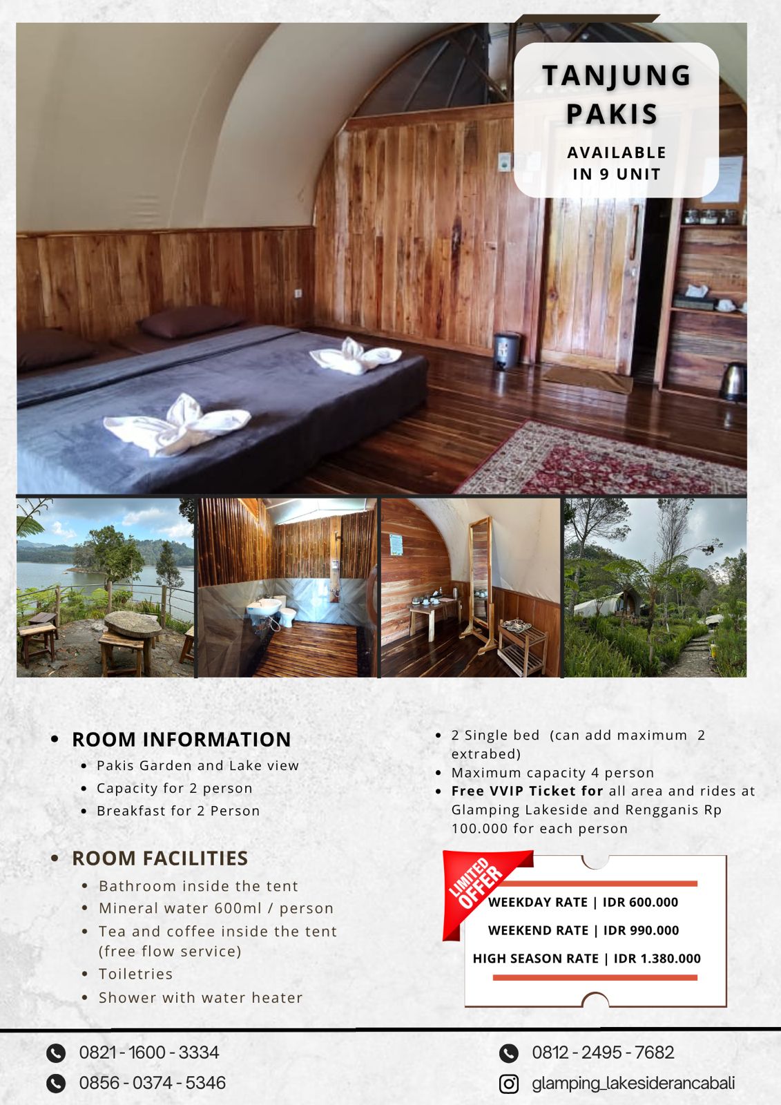 * Free VVIP Ticket for entry all area and rides at Glamping Lakeside and Rengganis Rp 100.000 for each person